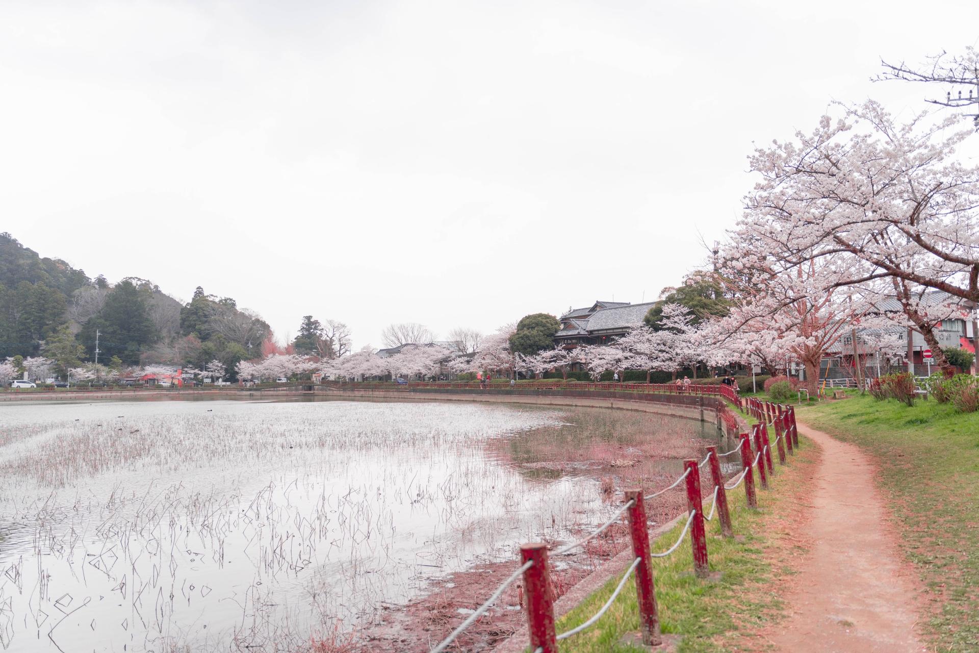 東金駅から車でわずか3分の場所に位置する八鶴湖は、桜の名所として知られています。春になると、湖畔に咲き誇る桜が美しい景観を作り出し、夜には桜がライトアップされ、幻想的な風景が広がります。春だけでなく、四季折々の風景が楽しめる場所であり、散策やボート遊び、釣りなど、自然の中でゆったりとした時間を過ごすことができます。